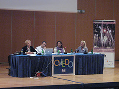 Janet Beavin acompaña en esta foto a algunas de las personas de la organización de la Asociación Asturiana de Terapia Familiar (ATFA). De izquierda a derecha: Lorena Suárez (tesorera), Cristina Díez (Presidenta), Janet Beavin, ...